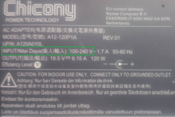 Make sure you look at the “INPUT:” section. It should read “100-240V,” which means you don’t need a voltage-converting travel adapter. If it reads “120V” or “240V” then ensure you do use a voltage-converting adapter so you don’t damage your device.